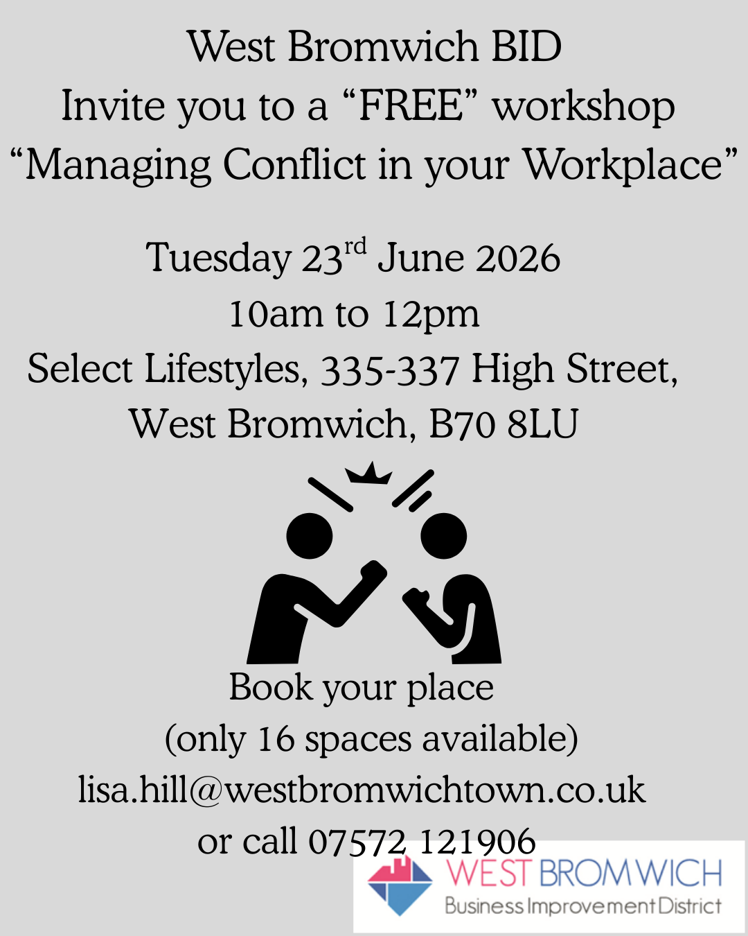 West Bromwich BID are hosting training for our levy payers in West Bromwich Town Centre.